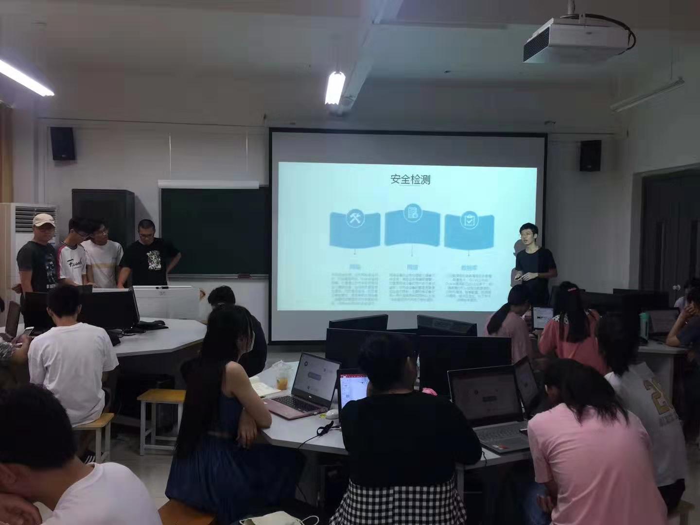 7月22日,我院2019年暑期校内实训班圆满结束,本期实训课程为期三周,7月4日开班,22日答辩汇报。云思科技有限公司、达内教育科技、安徽万工信息股份有限公司和兰智数加学院分别针对计算机科学与技术、信息安全、软件工程、数字媒体技术和物联网工程等五个专业开设的大数据+云计算、网络安全攻防、Java开发、Python、UID平面设计和web前端设计等实训项目进行结课答辩。院党委副书记兼行政副院长张旸观看了同学们的结课答辩。