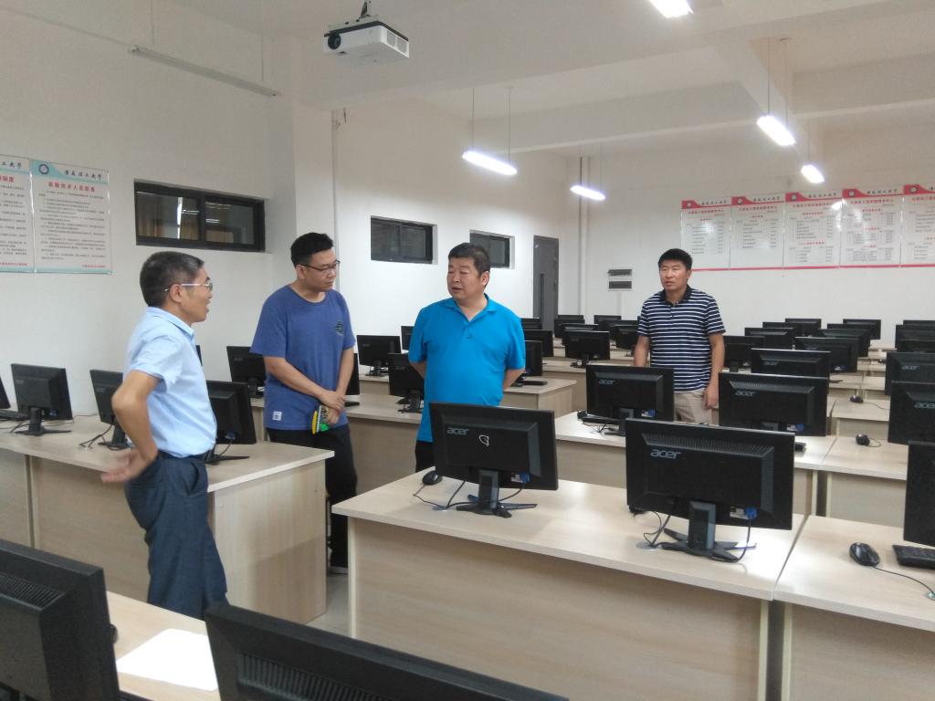 在计算机专业实验室,赵前进详细了解了计算机软件的运行状况,重点查看了实验室消防器材设施、安全检查记录和用电安全事宜。对个别实验室存在的地面、台面卫生环境不整洁等问题,提出了整改意见。