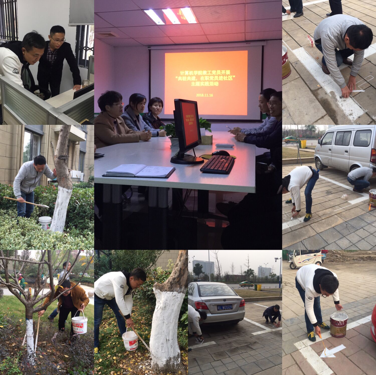 在物业公司会议室,双方就志愿服务岗的认领及后续活动计划安排等事项进行了沟通讨论,确保 “在职党员进社区”内容丰富,扎实有效。会后,党员们相继开展了电脑维护、树木保暖、车位标线喷画等活动。