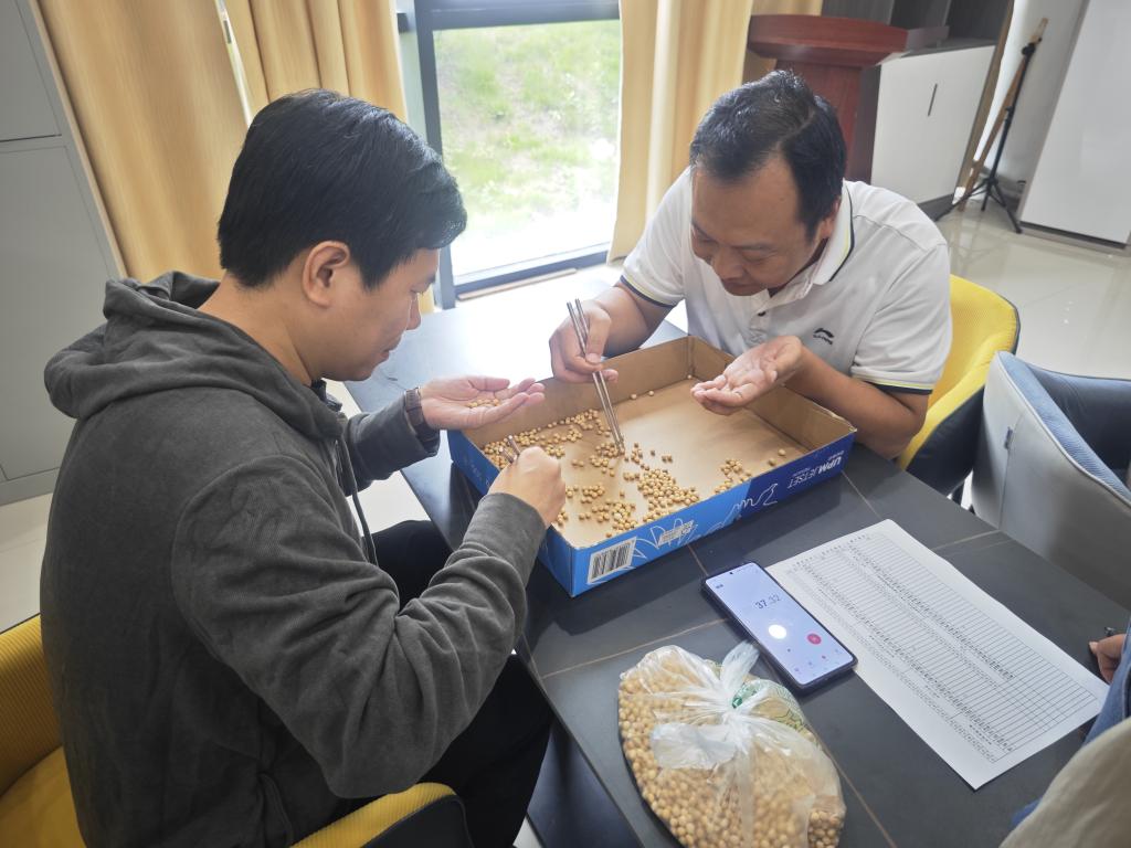 比赛规则为计算1分钟内参赛者用筷子夹取金豆的数量。随着裁判计时开始,1颗、2颗、3颗,看上去简单,实际操作中不少教职工用筷子夹取时都有滑落,场外教职工纷纷分享经验,有的建议平夹,有的建议夹边上的豆子,现场气氛浓厚。一双小筷子,一盘黄金豆,展示出了夹豆子最稳、最快的“种子选手”。